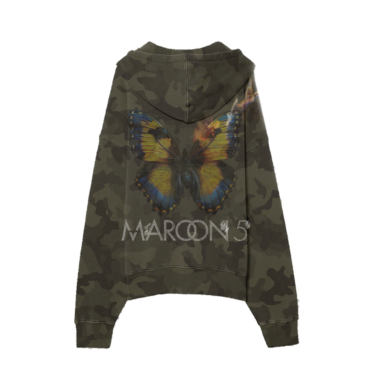 Camouflage, vintage wash unisex zip hoodie features Love is Like album art on front and back.